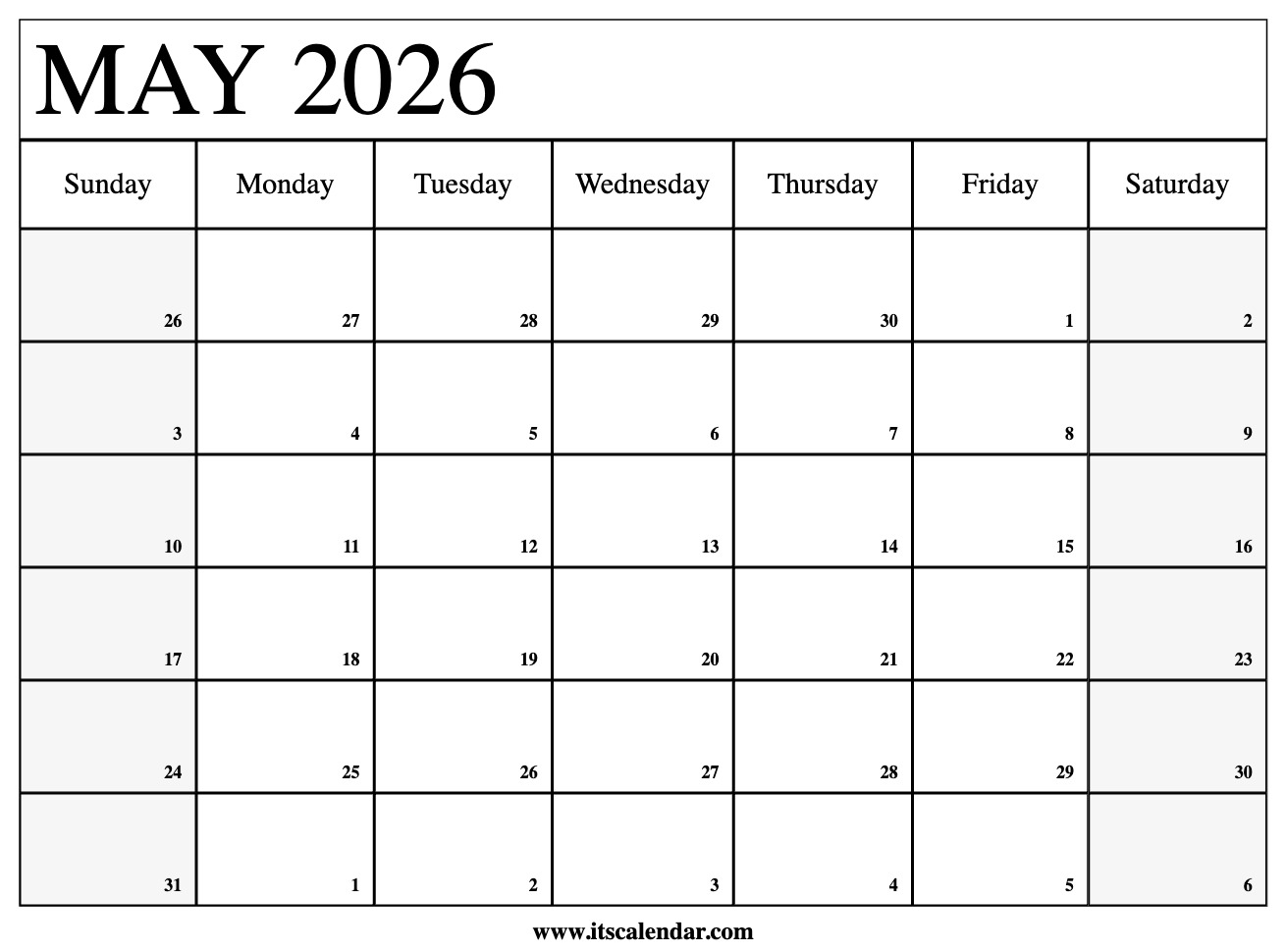 When planning these holidays, you need a clean, useful, printable calendar template to avoid getting lost. In May, almost every day is full of activity, especially if there are special days to remember, such as birthdays, weddings and anniversaries, it becomes harder to keep everything in mind. In order to avoid such a situation, all you have to do is to be calm and download a blank May 2026 calendar. May 2026 calendar template is great for planning all days individually. With a May 2026 calendar with holidays showing all holidays, you don't need to look at the other calendars or apps to find holidays over and over again.