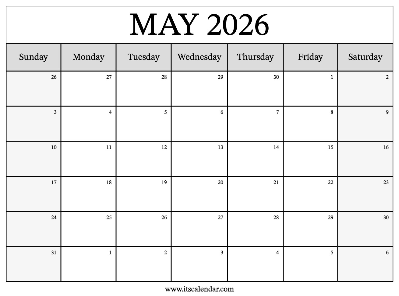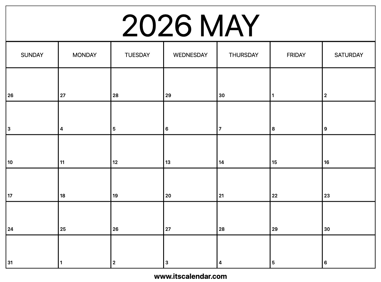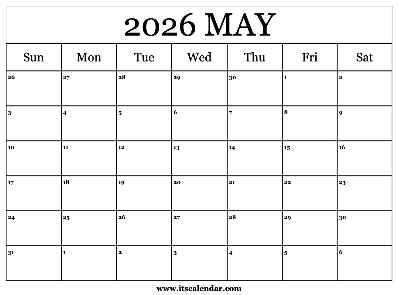 Free Printable May 2026 Calendar