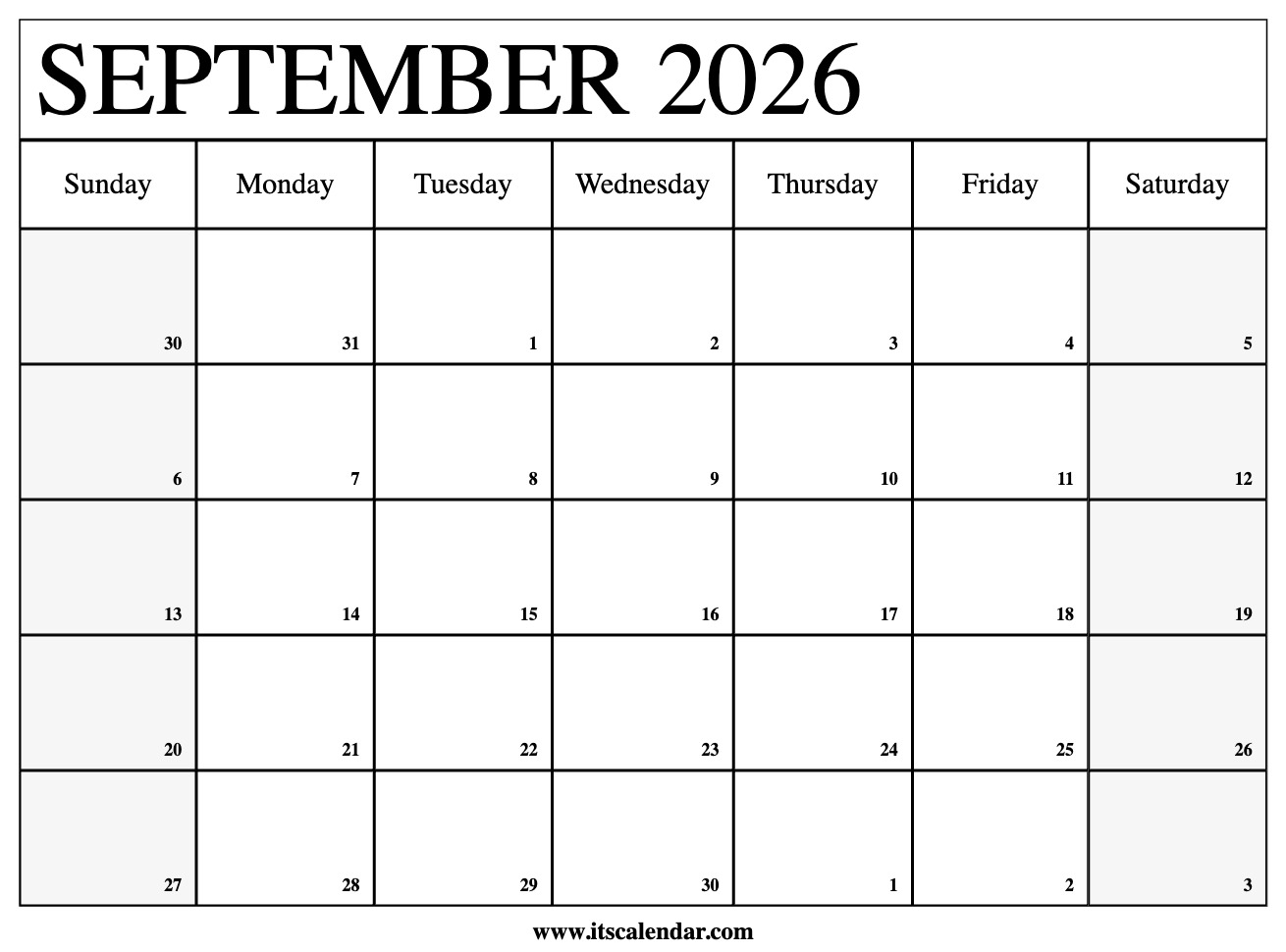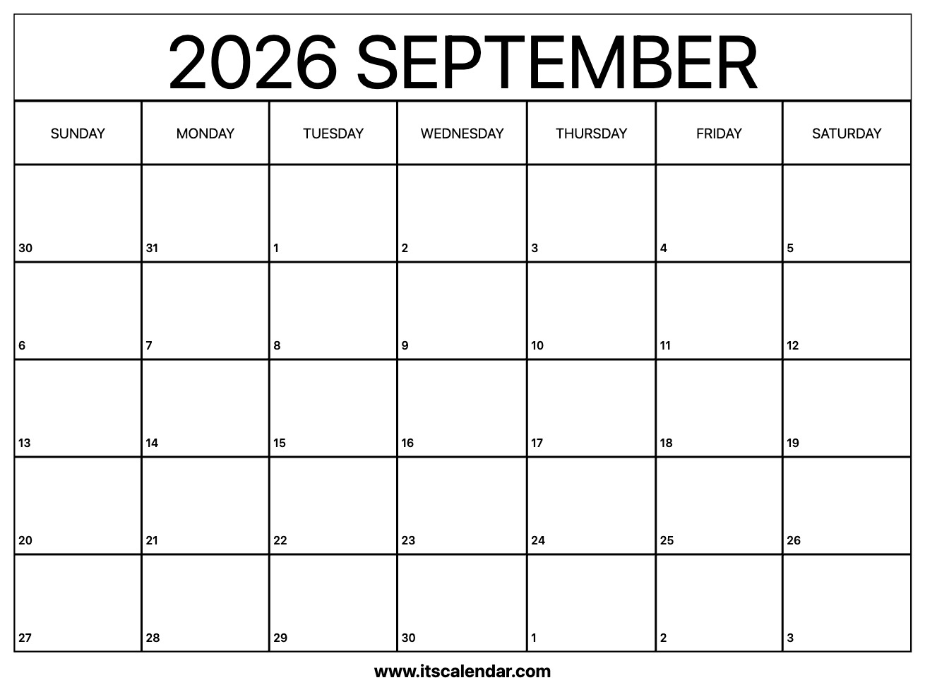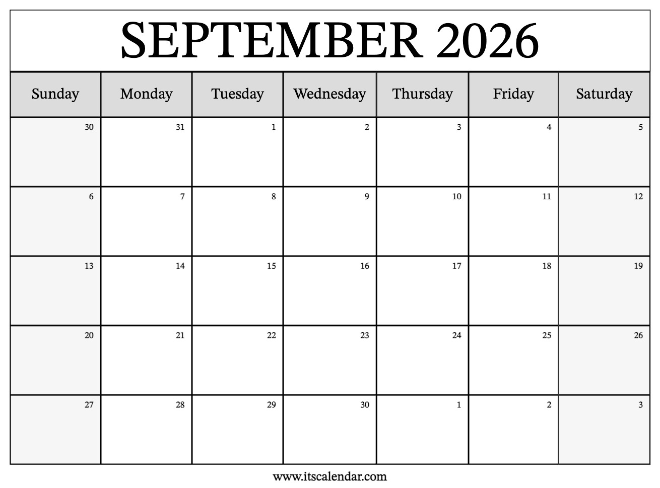 Free Printable September 2026 Calendar